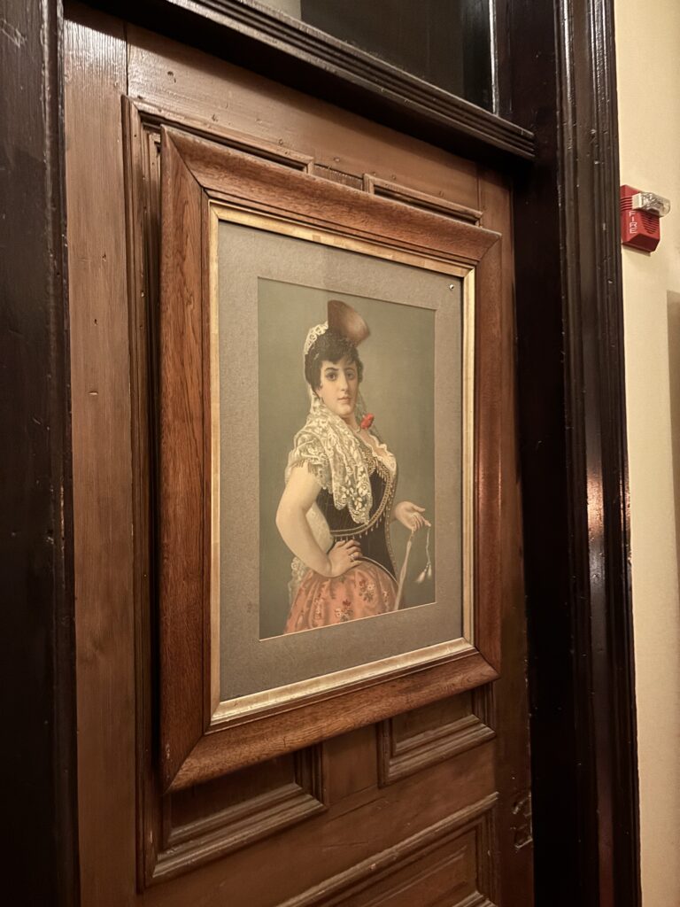 - A painting of one of the former âseamstressesâ from the upstairs brothel hangs in the barâs back wall. The story goes that the woman in the painting appears to move her eyes, shift position, or be seen standing in front of a vanity in a photo that wasnât there in the original image.